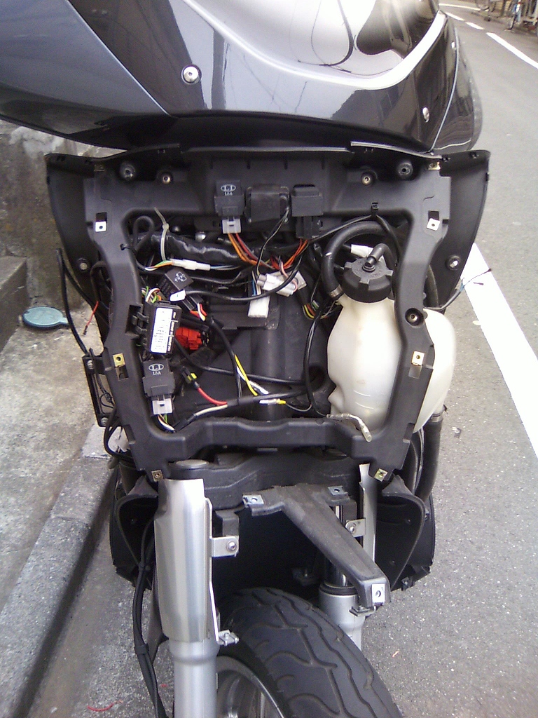 ハイ。ホーン取り付けの為、何より面倒なカウルを外した状態です。