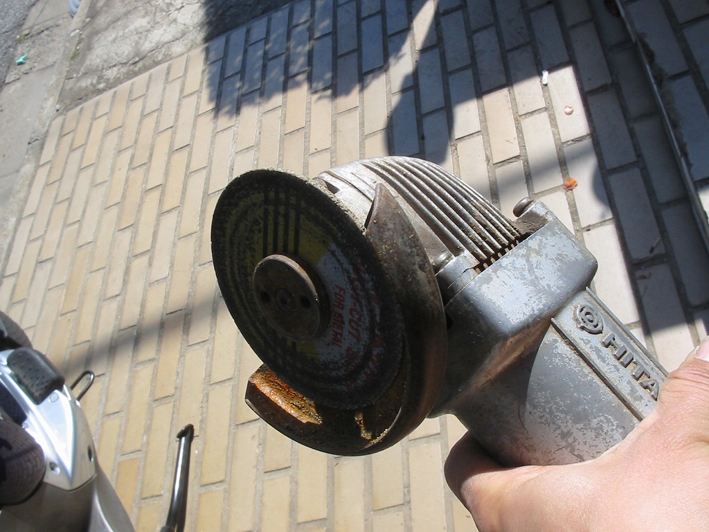 専用工具のカッター等もあるかもしれませんが、私は所有をしていませんでしたので、ディスクグラインダーでカットをする事にしました。