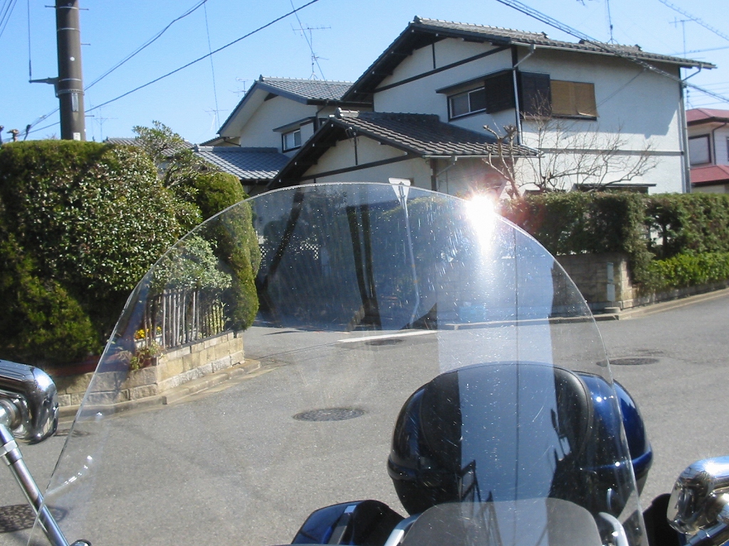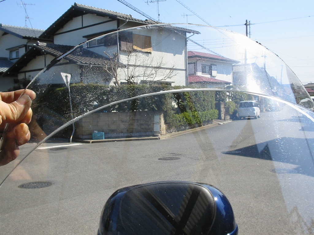 以前にも、ブログに書き込んだのですが、GIVI製のロングスクリーンはかなり上方向に長く、正面からの風がまったく当たらなくなるのは良い事なのですが、実は弱点が多々あります。