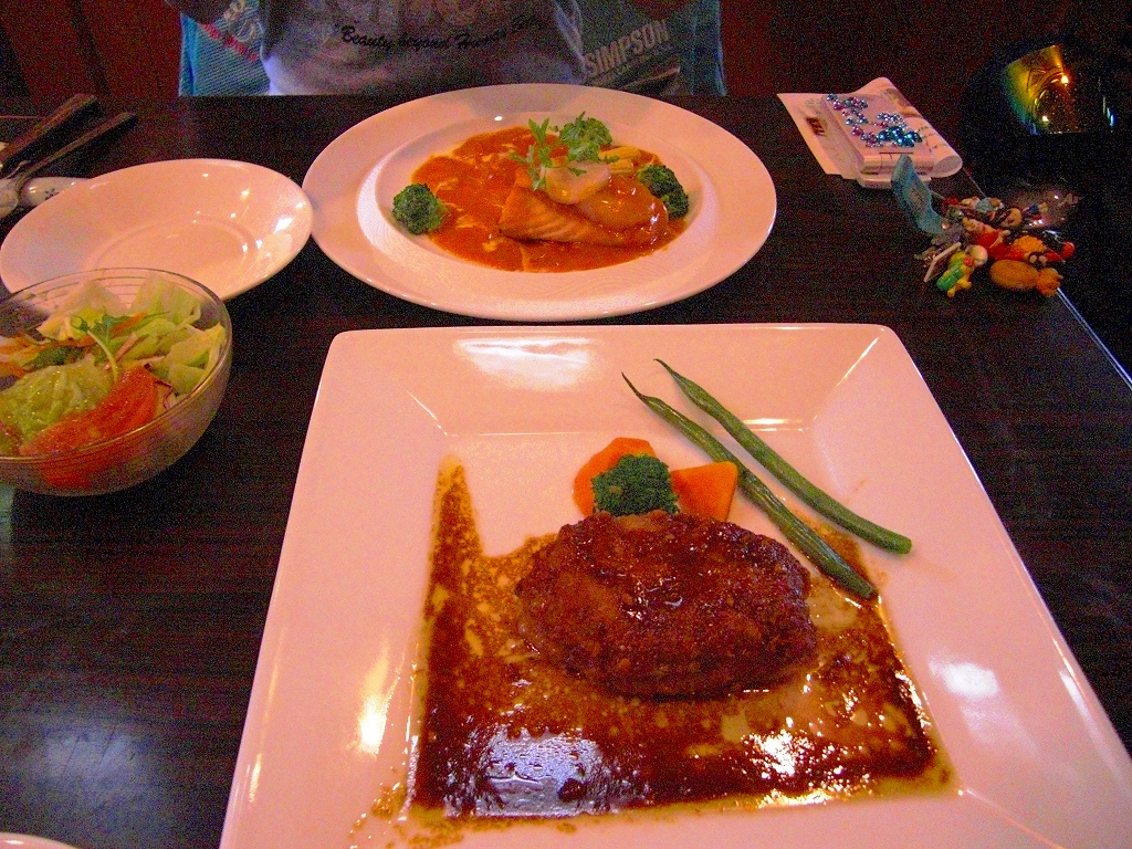 手前が自分の頼んだ、肉系?ランチ。後ろが彼女の頼んだ魚系ランチです。