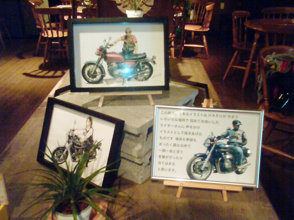 さらに、お店のディスプレイには、ミスターバイク等で有名な方のイラストが所狭しと展示されています。