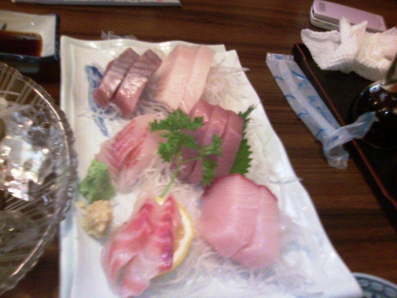 バチマグロ、カツオ、スズキ、ブリ、カジキ、鯛のお刺身定食。